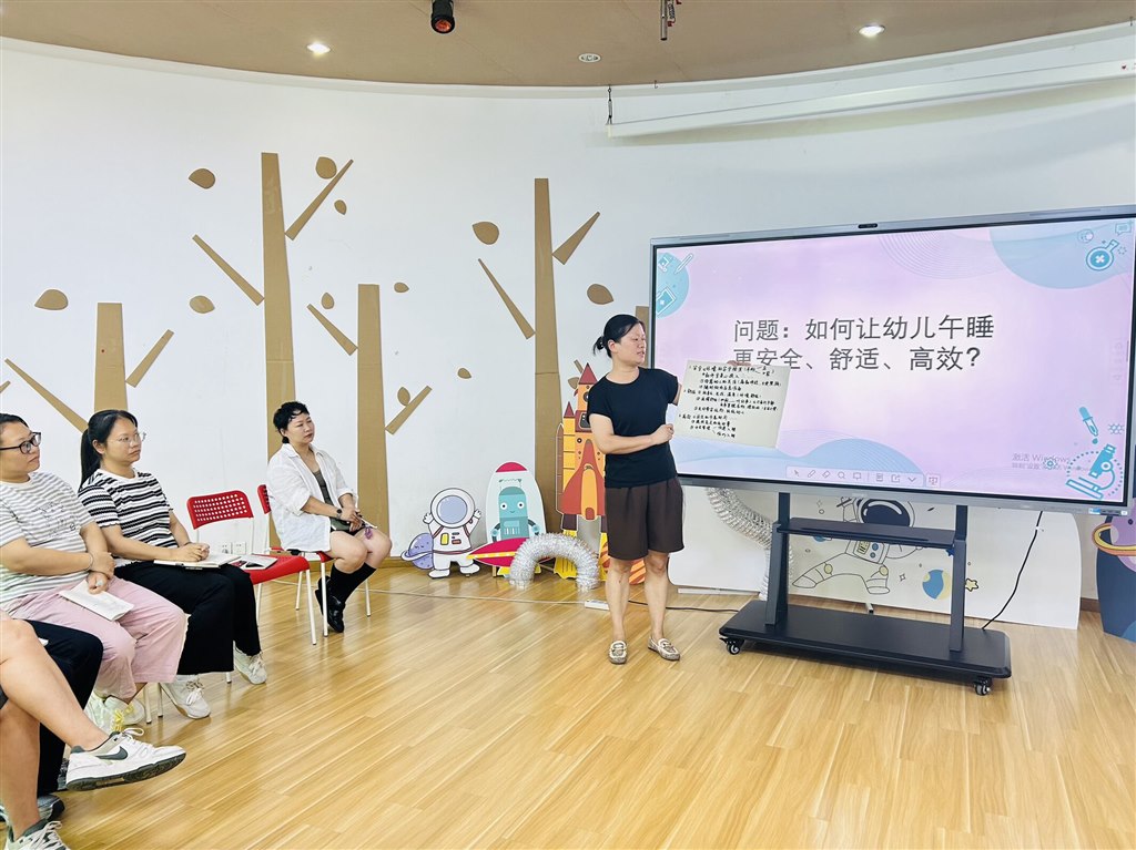 在方案基础上,各班教师结合日常工作实际,提出午睡护理中遇到的“幼儿入睡困难”“抗拒午睡”等具体问题,全体教师共同依托研讨成果,逐一分析原因并制定针对性解决策略,实现“理论+实践”的深度结合。
