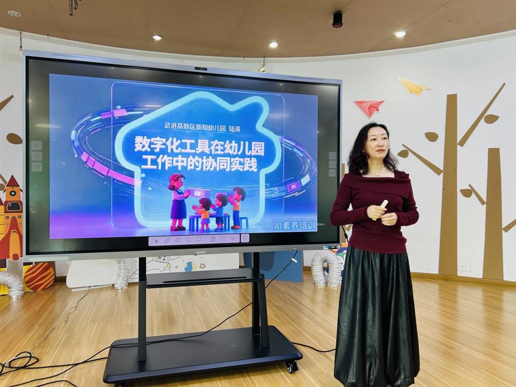 为顺应教育数字化趋势,提升教师信息化能力,2025年11月4日,宋剑湖幼儿园特邀武进国家高新区南湖幼儿园陆燕园长,开展以《数字化工具在幼儿园工作中的协同实践》为主题的专题培训。活动围绕数字化工具在幼教场景中的实际应用,帮助教师探索科技赋能教育的新路径,为日常教学与管理注入新动力。